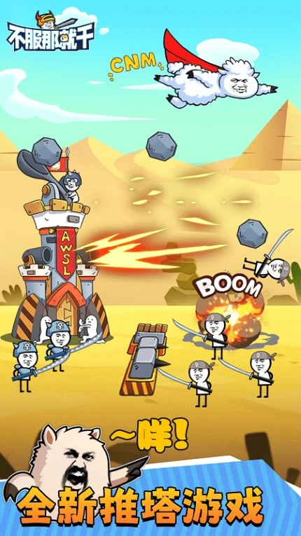 为您免费提供《不服那就干》下载,这款融合塔防游戏精髓与策略深度的角色扮演手游,以熊猫人战士为主角展开荒诞战争。玩家将在六大动态场景中体验策略攻防,通过唐僧皮肤等30+装扮解锁特殊技能,自由搭建模块化防御设施。沙雕物理引擎与天气系统创造出酸雨导电、涨潮水雷等战术变化,12章剧情战役搭配三档难度选择,让每场战斗充满意外与策略博弈。
