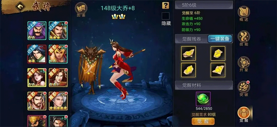 评定武将的强弱,除了装备版块的辅助提升之外,武将内功的修炼也是至关重要的一环,可以说角色外功强化和内功修为在最大程度上决定了本方势力的强弱。武将自身的硬实力的提升主要从武将升星、突破、觉醒和技能等方面着手。今天,我们就来一起探讨下有关武将养成方面的话题,以便各位小伙伴能先人一步、霸业有成。