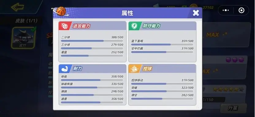 在武竹进攻到对方两分区时,进行后仰跳投会触发一段向后的小闪身,并且提高命中率,这也使得武竹选手在对方两分区的得分率高、手段多样,所以说武竹是各类角色中两分得分最强SSR也不为过。