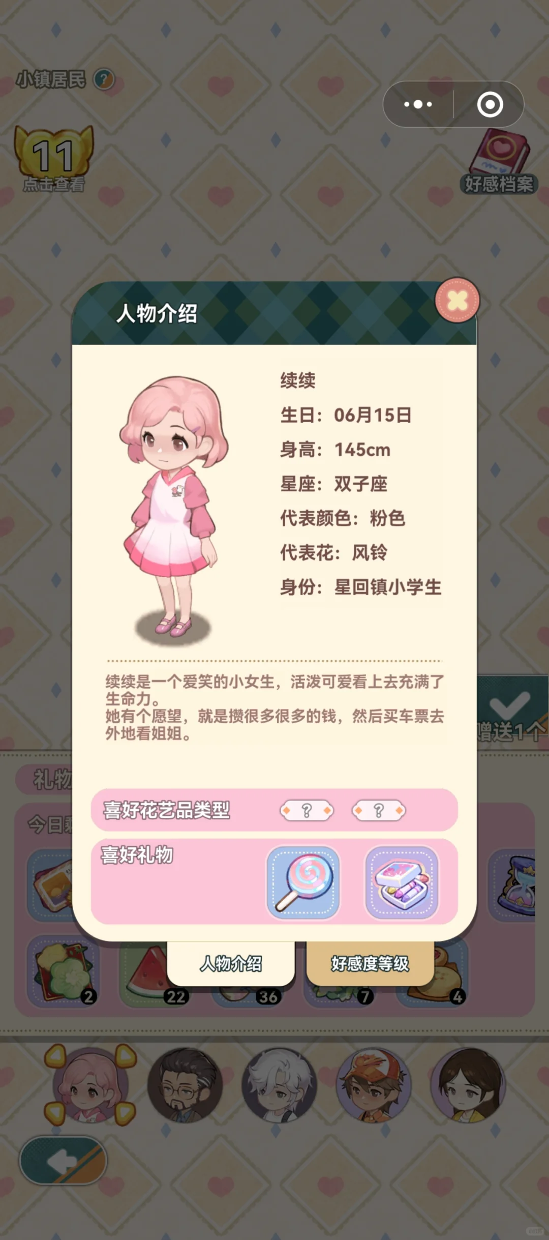 喜爱礼物:抹茶团子、金平糖
