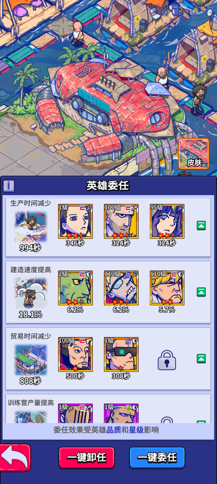 ① 将英雄委托在指挥中心即可加快基地生产,大大缩短生产时间提高生产效率,委托的效果和英雄品质和星级正相关。