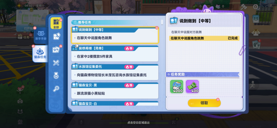 社团专属任务:加入社团后解锁,分 “基础活动”和 “进阶挑战”,基础活动如 “音乐社乐谱抄写”“篮球社运球训练”,耗时 30 分钟,奖励社交属性+社团徽章;前期每天完成 1 次基础活动即可。