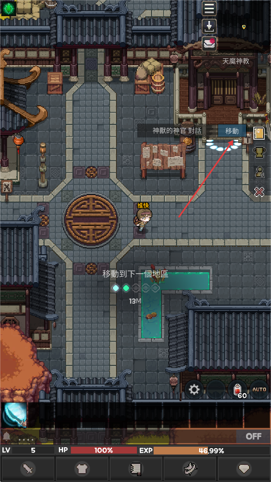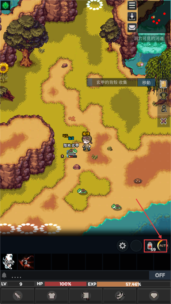 4、战斗时点击右下角AUTO,可以自动寻怪工具,还会自动喝药水,补充血量。
