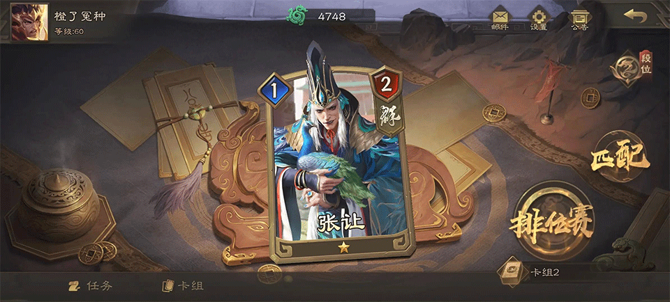 【排位赛】:游戏对局的开始入口,可以先搭配好卡组再匹配。