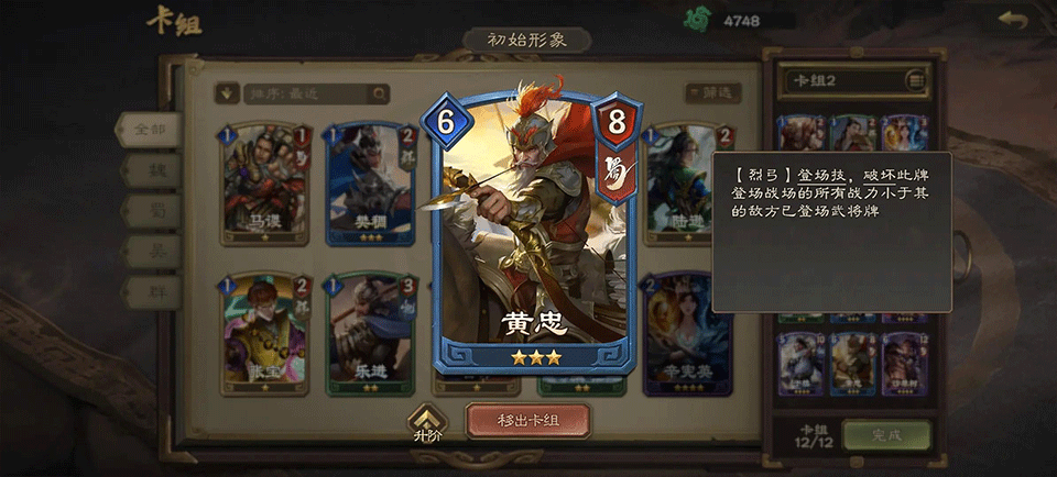 第一:有几个武将技能需要小心,比如【黄忠】会破坏卡牌。