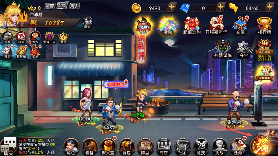 3、阵容安排好后点击游戏首页界面内右下角的江湖